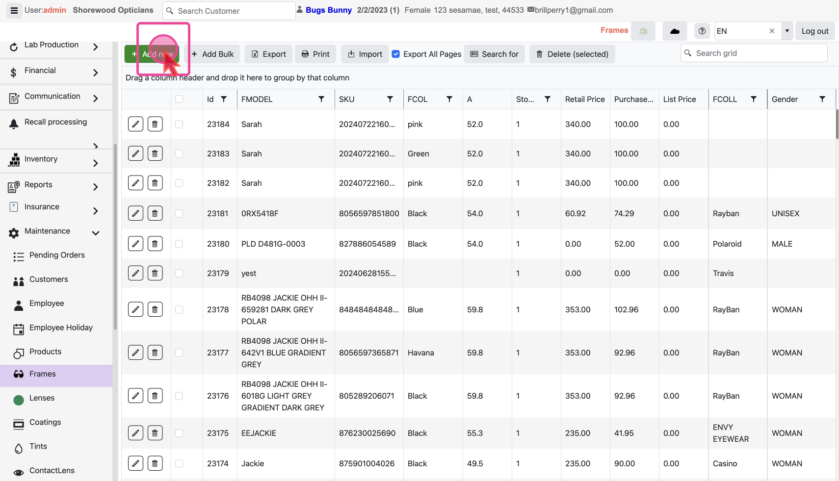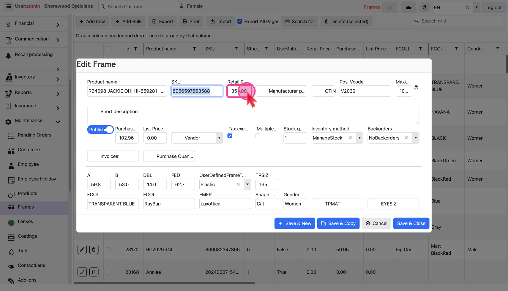 Before you sell any Frames, they should be added into Inventory. You should Use Master Online Catalogue to Quickly Add Frames in Inventory . But you can also add, edit or delete them one by one also and this article guides you how.